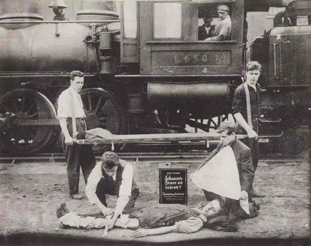 The doctor explained to Johnson the dangers of railroad construction and the lack of medical supplies to treat the unique industrial injuries that were often incurred great distances from hospitals. Johnson thought carefully about this discussion and saw an opportunity to both advance the field of healthcare and build his young business, he took the idea away and designed the worlds first aid box. The content was mixed and had dressings for catastrophic bleeding and primative anticeptics, it also contained versions of pain relief.